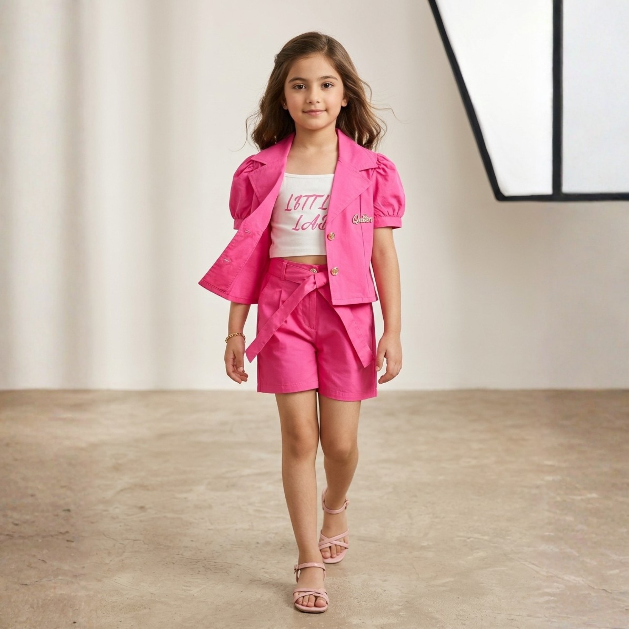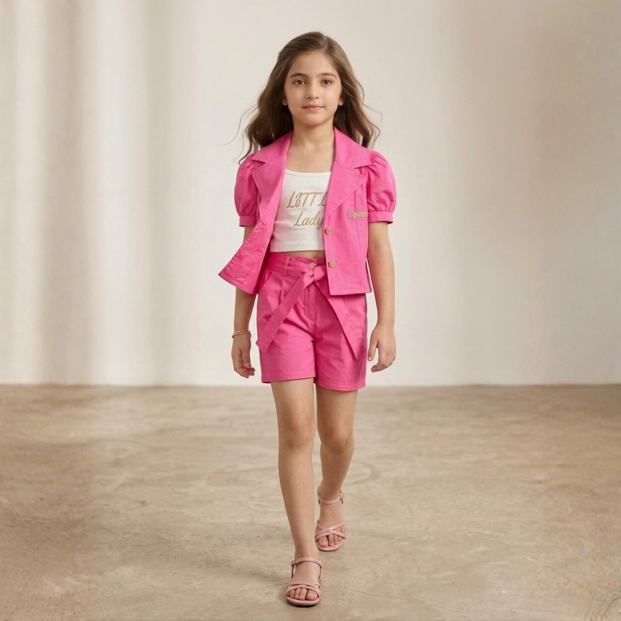 Give your little one a trendy and confident look with the Damsel Kids 3 Piece Coat Set with Inner Shirt. Designed in a soft light pink shade, this outfit blends smart styling with everyday comfort.