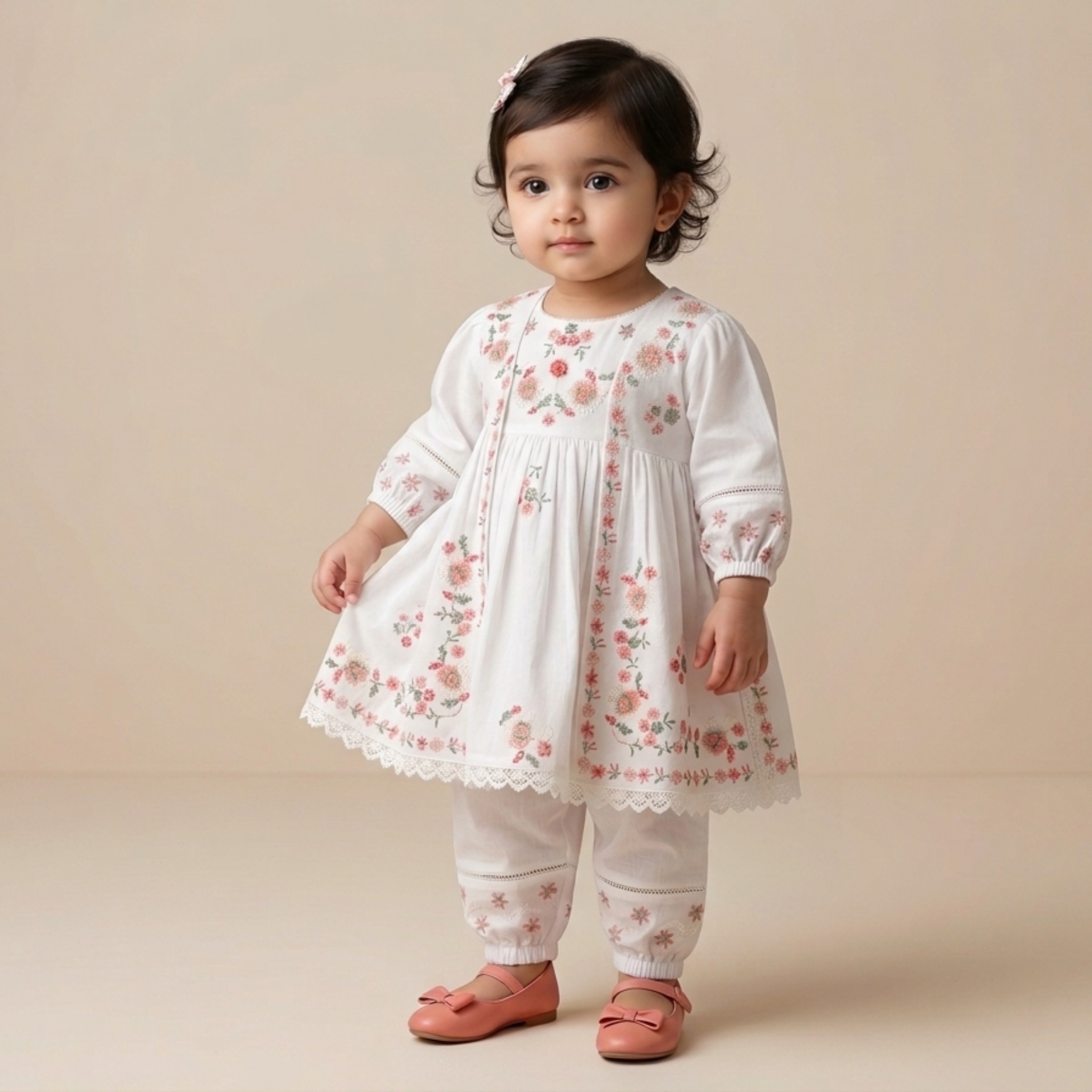 Designed for toddlers aged 1–3 years, this outfit offers a relaxed fit that allows easy movement, making it perfect for daily wear, casual outings, and small gatherings.
